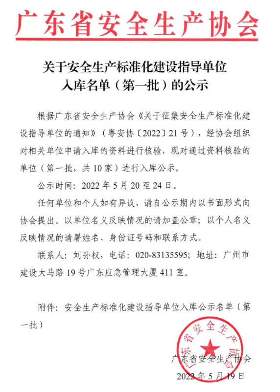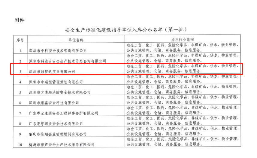 喜讯!!冠智达成功入库安全生产标准化建设指导单位