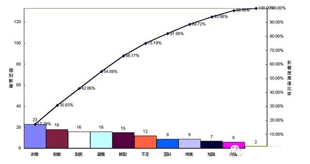 经济学上的80/20原则用到管理领域,其基本原理是区分“关键的少数”和“次要的多数”,这样有助于抓关键因素,解决主要问题,为直观起见,用图形表示出来,这一图形便是排列图。