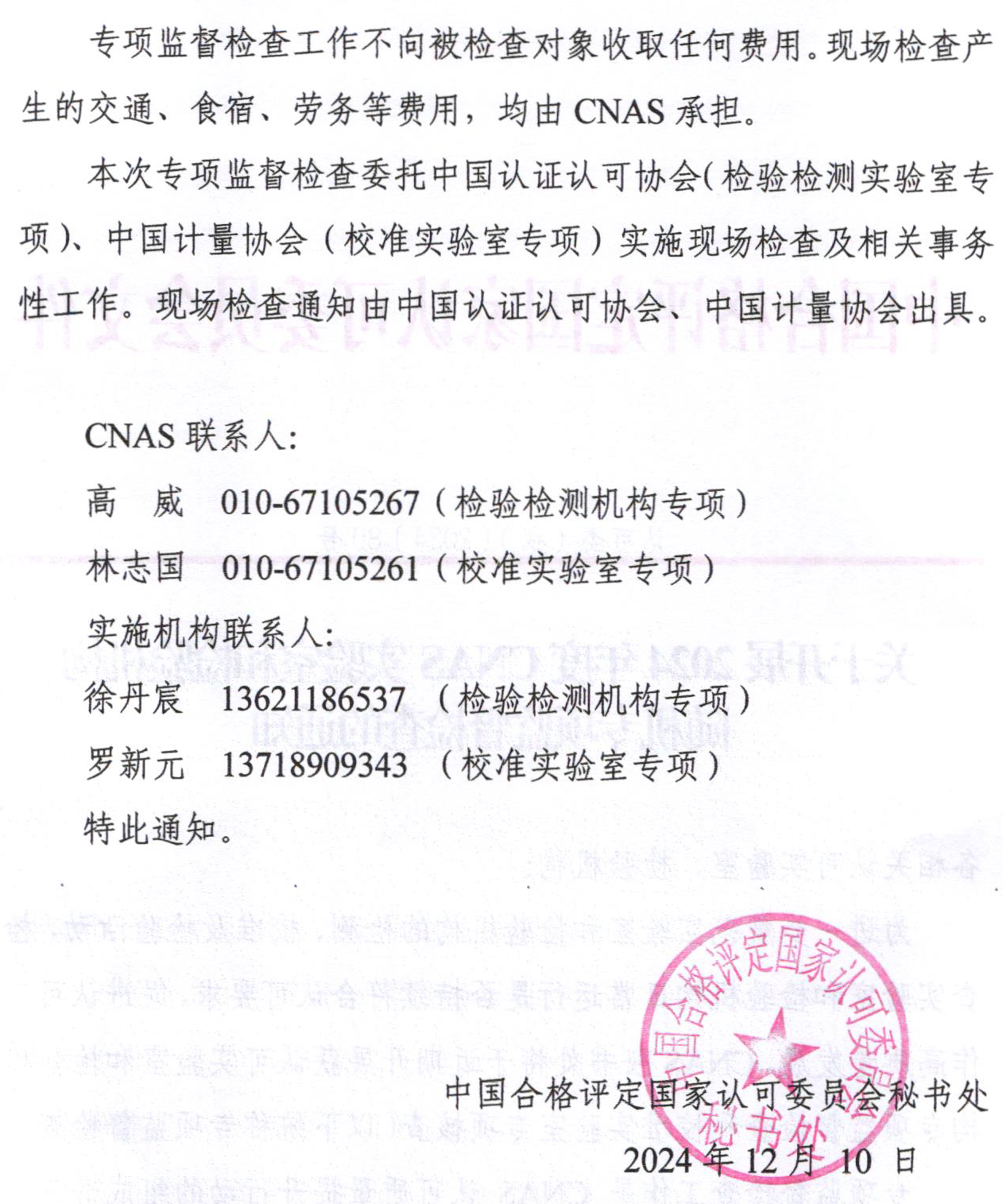 CNAS | 2024年度实验室和检验机构随机专项监督检查即将开始