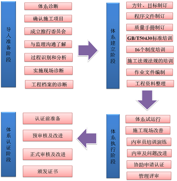 GB/T 50430认证以ISO 9001标准为依据,是ISO 9001的本土化,更加符合中国企业的实际情况;是ISO 9001的行业化,更加符合中国的工程建设法规和惯例;是ISO 9001的具体化,更加清晰明确,利于掌握、应用和认证。
