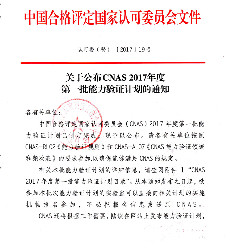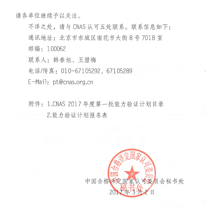 3月份CNAS公布了2017年第一批能力验证计划,自2017年3月2日起,想要参加本次能力验证计划的实验室可以直接向相关计划实施机构报名参加。