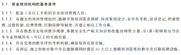 安全培训机构的基本条件(摘自《安全生产培训机构基本条件》):