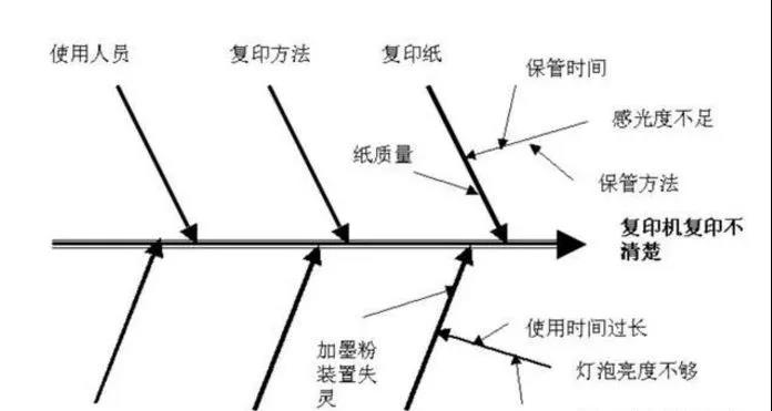 举例:以下是对复印机复印不清楚这一事件进行分析,只对复印机和复印纸进行了展开,其它同。