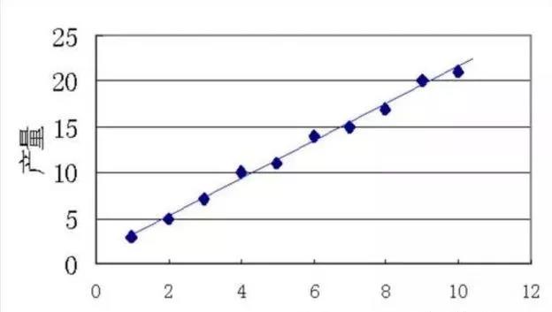 举例:以下产量和温度之间为正相关。
