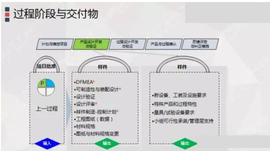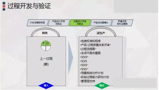 此阶段是为了满足客户期望和产品要求,进行生产制造过程的开发,同时也运用DFMEA工具,识别制造过程中的潜在问题和风险,从而进行过程设计改进,主要为: