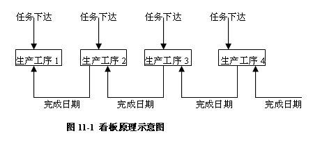 由上图可以看出:“看板管理”是由代表客户需求的订单开始,根据订单按产品结构自上而下进行分解,得出完成订单所需零部件的数量。在生产过程中,看板起到指令的作用,通过看板的传递或运动来控制物流。