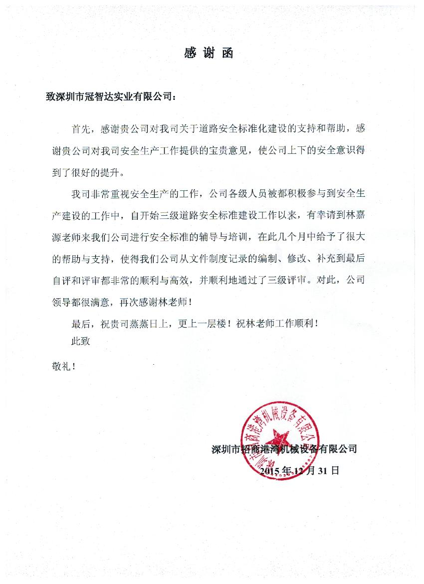 拥有交通运输企业安全生产标准化三级评审资质、城市客户企业安全生产标准化三级评审资质、收费站安全生产标准化三级评审资质质、深圳市道路旅客运输驾驶员继续教育培训机构等资、广东省安全生产研究院深圳站点、可燃气体浓度探测仪检测资质、冶金等工贸行业企业安全生产标准化二级评审资质、冶金等工贸行业企业安全生产标准化三级评审资质、深圳市安全培训资质、深圳市危险化学品评审单位、认证咨询机构备案证书、国家两化融合管理体系咨询机构、深圳市碳核查服务机构。
